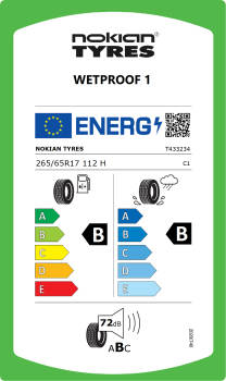Nokian Tyres Wetproof 1 er en frygtløs mester på våde overflader, der tilbyder uovertruffen sikkerhed på regnfulde dage og våde veje. Dækkets vigtigste egenskaber er fremragende bremseegenskaber i vådt og kraftig akvaplaningsresistens. Nokian Tyres Wetproof 1 er velafbalanceret mellem maksimal komfort og ekstrem sikkerhed. Wetproof 1 har også lav rullemodstand og forbedret kilometerydelse.